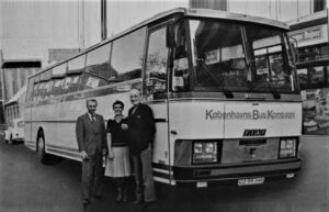 Selvom Hastrup-Vig var gode Setra kunder, blev der også indkøbt nogle få busser af andet fabrikat. Her ses overtagelsen af en Fiat 370 bus ved overtagelsen i marts 1978, taget uden for bureauet på Øresundsvej.