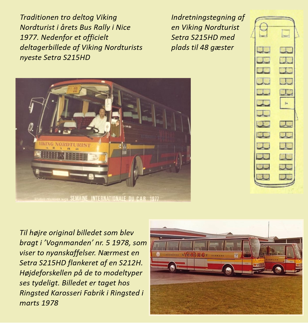 Setra S215 HD bussen er en lettere og forbedret udgave af S200 modellen som fabrikken lancerede nogle år tidligere og som Leif Hansen anskaffede som selskabets flagskib i forbindelse med jubilæet i 1975. S200 bussen blev aldrig super populær. Det var som om, at markedet endnu ikke var modent til en så stor luksusbus, og der blev derfor kun bygget omkring 50 stk. Angiveligt skulle 3 af dem være leveret til Danmark, for ud over Viking Nordturist dukkede en op hos OK Buslinier i Tim samt en hos Kroghs Rejsebureau i Nykøbing Mors. Til gengæld bliver Serie 200 lanceringsmodellen S215HD super populær, og der blev bygget mere end 7000 stk. inden S215HD modellen blev afløst af Serie 300 modellerne.