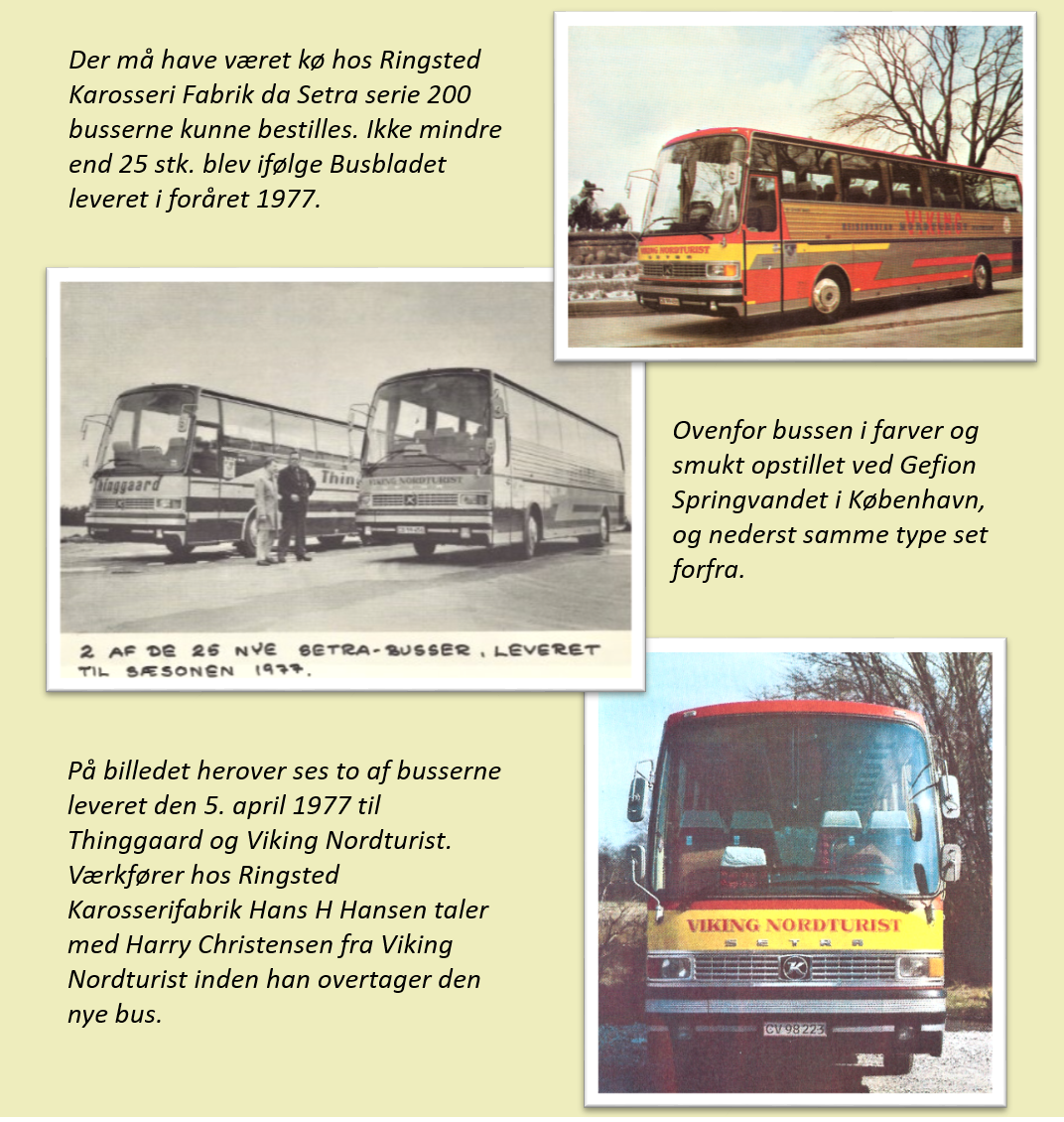 I April samme år henter Viking Nordturist, sammen med Thinggaard Rejser, hver en ny Setra luksusbus hos Ringsted Karosseri Fabrik, og de to rivaler øger dermed deres respektive vognparker, med hver et nyt eksemplar af landets første S215 HD busser fra fabrikken i Ulm. Denne type skal senere vise sig, at blive fabrikkens mest populære nogensinde, og adskillige danske vognmænd får enten omgående eller kort efter lanceringen netop denne type i sin stald. Modellen bliver i øvrigt Setra fabrikkens fremtidige ‘prototype’, og efterfølgende serier, foreløbigt til og med serie 500 busserne, produceres fortsat efter netop denne skabelon.