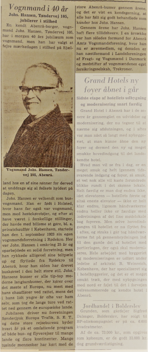 De første 25 år frem til lige efter 2. verdenskrig, driver Johannes vognmandsforretning med flyttebusser, men da han flytter virksomheden til Tøndervej i Åbenrå, bliver flyttebusserne udskiftet med turistbusser. Han havde dog allerede haft et par turistvogne i forretningen inden flytningen til Åbenrå, men flytningen blev enden på flyttefirmaet.