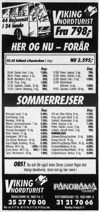 Samtidigt med flytningen indgår Lars Carstensen endnu et salgssamarbejde. Denne gang er det med Larsen Rejser, som købmanden Lars Larsen (Jysk – Jysk Sengetøjslager) havde stiftet i 1990. Med denne aftale opfyldes et næsten 1 år gammelt ønske hos Lars Carstensen om at sælge disse rejser, om dermed få lidt agentprovision i pengekassen. Et internt notat viser dog, at Viking Nordturist allerede i 1994 indgik et kørselssamarbejde med Larsen Rejser på destinationen Costa Brava, så noget tyder på, at Viking Nordturist sammen med Rønnede Turist, også har bragt Lars Larsens gæster til og fra hotellerne på Costa Brava gennem flere år.