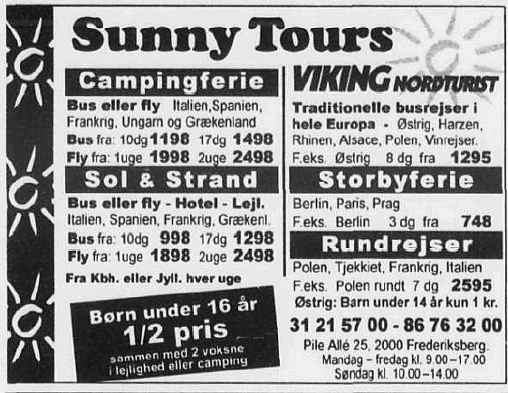 Sunny Tours driver deres forretning fra Pile Alle 25, hvor de har hovedsæde, og vælger i første omgang, at drive Viking Nordturist videre fra lokalerne på Åboulevarden. Men hos Sunny Tours kæmper man tilsyneladende med et stigende underskud på salget af campingferie i Sydeuropa og flyrejser til Middelhavs området. Måske kan man derfor undre sig over, at netop Sunny Tours overtager det konkursramte Viking Nordturist.