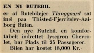 Gideon bussen var bygget i Horsens og kostede den famøse sum af 30.000 Kr. (= 650.000 kr. i 2018). Poul Thinggaard kunne takket være sin nyerhvervede Gideon udvide sin postrute, så den nu gik helt fra Nykybing Mors, via Thisted og ud til Hanstholm. Den oprindelige postrute, som jo foretoges med heste og vogn, gik fra Thisted til Nykøbing Mors og var på 30 kilometer, men takket være Gideon bussen, kunne den nu udvides med yderlige 21 kilometer. For at kunne tjene penge nok til at tilbagebetale købesummen, som han hovedsageligt havde lånt, brugte Poul bussen til at køre fisk og fiskekasser til og fra havnen i Hanstholm om natten. Sæderne, som i virkeligheden var træbænke, blev afmonteret når sidste tur var kørt, og derefter var der god plads til fiskekasserne. Næste morgen skulle bussen så rengøres og træbænkene monteres, hvorefter Gideon bussen igen var klar til sin post- og rutebilrute. Bussen har sikkert lugtet grimt af fisk, selvom den blev rengjort hver morgen, men det har sikkert ikke rørt kunderne det mindste. På de kanter siger man jo, at der ikke lugter af fisk – men af penge.