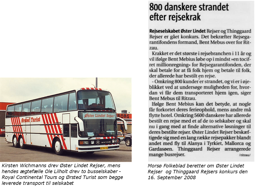 Med sig i faldet tog Kirsten Wichmann således også Thinggaard Rejser, og det er trist 64 årig Poul Erik Thinggaard, som må konstatere, at hans livsværk er gået til grunde. ”Sådan går det når man får for store drømme”, konstaterer Poul Erik Thinggaard til pressen, mens han fotograferes i døren til sin eneste tilbageværende busrute, nemlig Thinggaard Express rute 981 mellem Frederikshavn og Aalborg.