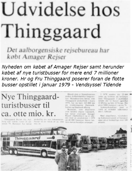 Bureauet overtages allerede den 1. Januar 1979, og dermed var Thinggaard Rejser trådt ind på den københavnske scene. Salget af Thinggaard rejser stiger fortsat støt, og nu med salgskontor i Aalborg, Odense og hos Amager rejser i København havde man mio. af kunder for sine fødder.