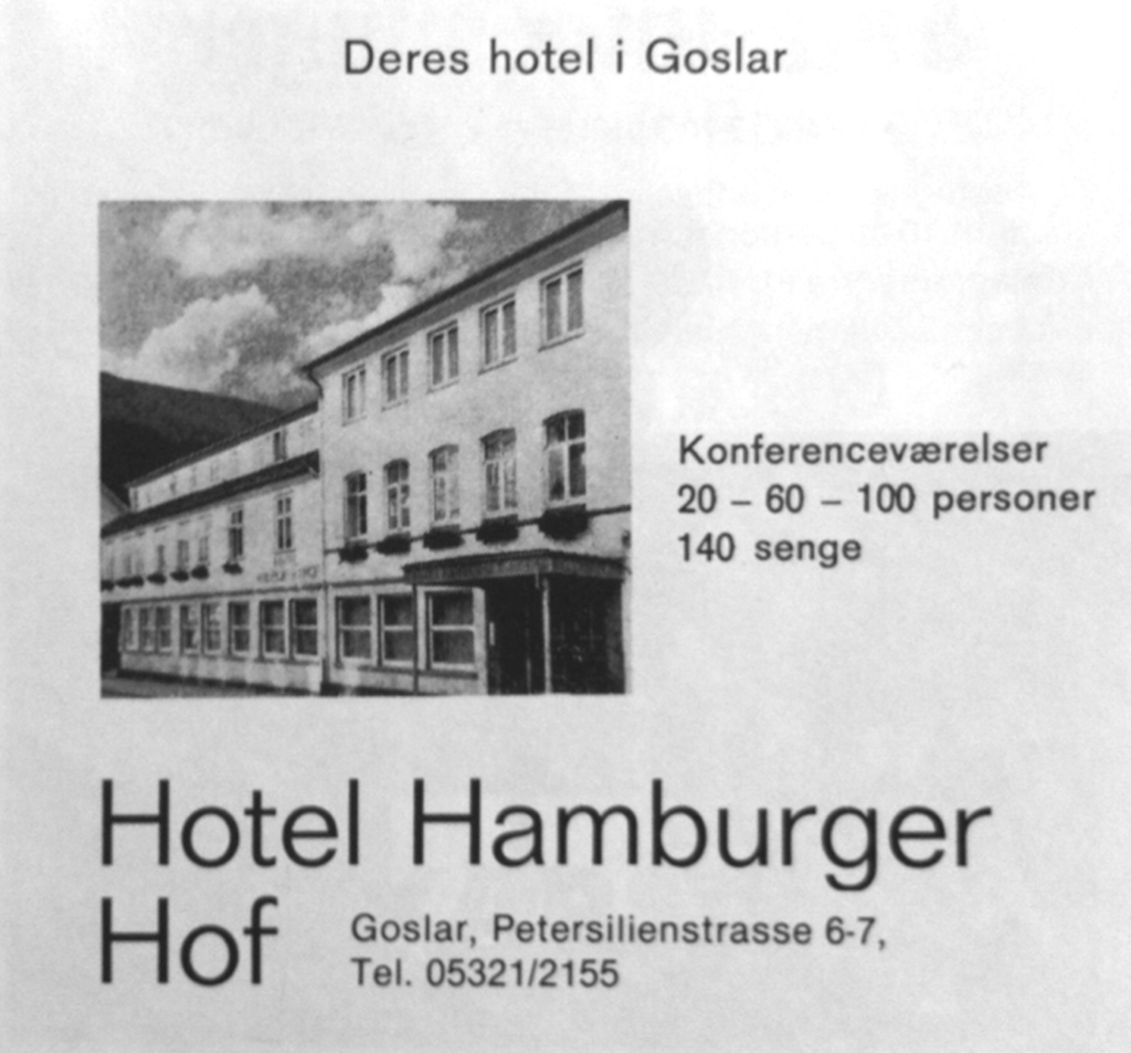 Bussen kringles ind gennem byen, og med et lille suk, stopper chaufføren bussen foran Hotel Hamburger Hof i Petersilienstrasse. Hurtigt ind efter nøgler til gæsternes værelser, og de mange Dobbeltzimmer, Dobbeltzimmer mit dusche oder mit dusche und WC, fordeles til de trætte gæster. Alle har jo været tidligt oppe.