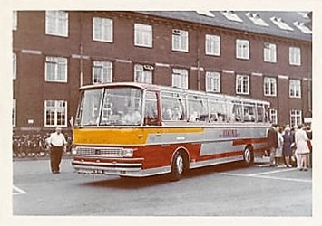 Deltagerlisten bliver fundet frem, og gæsterne tjekkes ind, efterhånden som de ankommer, for derefter hurtigt at forsvinde ind i bussen. Der rokeres lidt frem og tilbage mellem sæderækkerne, og til sidst er alle på rette plads. Under indtjekningen prikkes man lige på skulderen. Det er direktør Leif Hansen eller Peter Poulsen fra bureauet, som overrækker en lille kuvert. Kuverten indeholder lidt kontanter og ikke mindst de banknoterede checks, som skal afleveres til hotellerne, som betaling for overnatningerne undervejs.