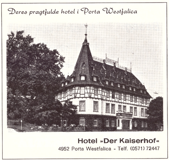 Historien om Rottefængeren kan lige fortælles, og selvom den er uhyggelig, er det sjovere end historierne om Ruhr distriktet, dets fabrikker og krigens bombninger. Travlhed ved mikrofonen, gæsterne skal nemlig også orienteres om den planlagte aftentur, for allerede nu står der ’Minden og Porta Westfalica’ på skiltene, og efter ganske få kilometer, når vi frem til det smukke Hotel Kaiserhof.