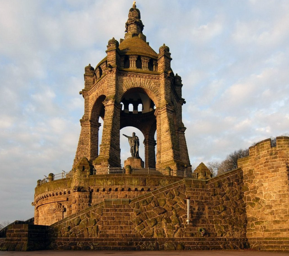 Over hotellet truer endnu et stortysk mindesmærke. Denne gang er det Kaiser Wilhelm I. , som i al sin tyske imposante overflod skuer over landskabet. Men den spændende historie om hotellets tid som arbejdslejr og filial af Neuengamme KZ lejren, samt lidt om de danske betjente som var tvangsarbejdere her, skal også lige fortælles, mens vi langsomt parkerer bussen foran hotellet.